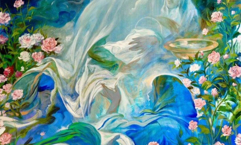 به گزارش تحلیل کرمانشاه به نقل از آنا، روحالامین در توضیح این نقاشی نوشته است: «تابلو نقاشی «مادر غنچهها» جشن تولد ناچیزی است با رنگ، از طرف بنده کمترین به پیشگاه ملک پاسبان حضرت خدیجه کبری سلام الله علیها مادر مکرمه حضرت خیر النساء فاطمه زهرا سلام الله علیها …