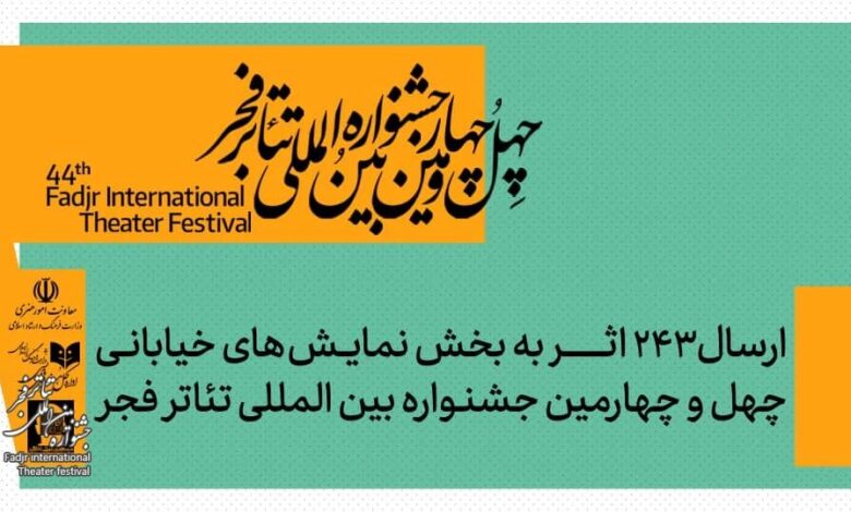 به گزارش خبرگزاری خبرآنلاین به نقل از روابطعمومی ادارهکل هنرهای نمایشی، طبق آمار ارائه شده از سوی دبیرخانه چهلوچهارمین جشنواره بینالمللی تئاتر فجر، ۲۴۳ اثر متقاضی شرکت در بخش تئاتر خیابانی این رویداد ملی و بینالمللی شدند.