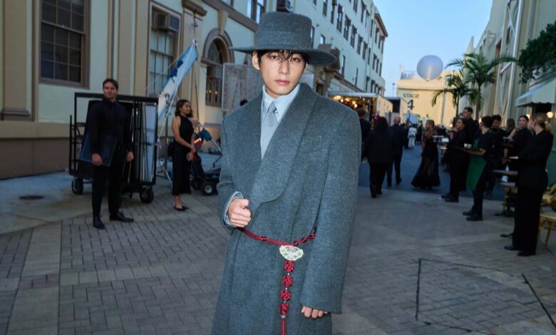 کیم تهیونگ که تجربه حضور در رویدادهای مد را در کارنامه خود دارد (آخرین بار در شوی بهار ۲۰۲۶ برند سلین در پاریس شرکت کرده بود)، این بار نیز با استایلی چشمنواز ظاهر شد که بهراحتی میتوانست روی صحنه اصلی مد راه برود.